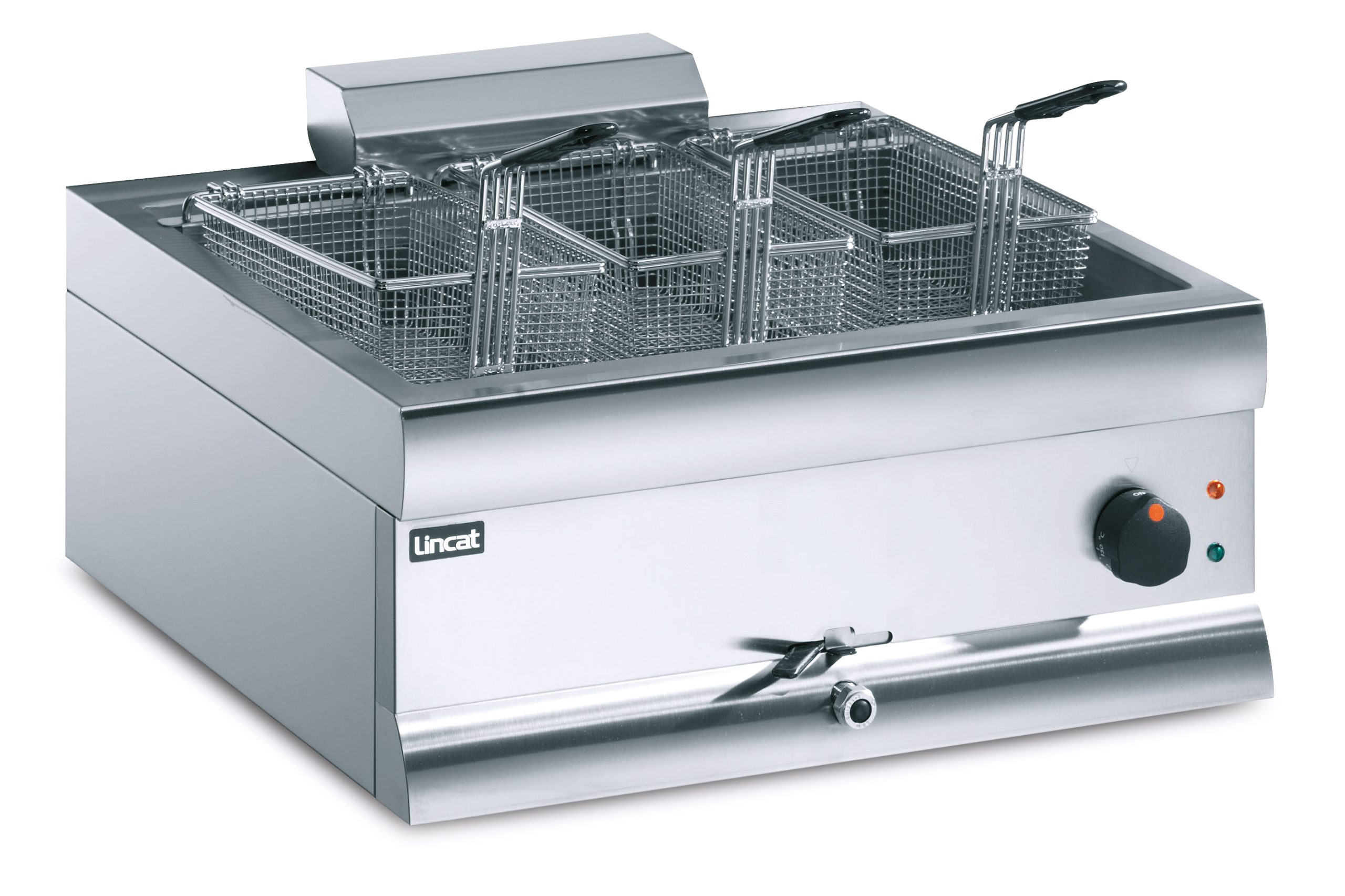 - Single tank fryer with three baskets giving you the flexibility to cook different foods or loads simultaneously, delivering 26kg of chips per hour