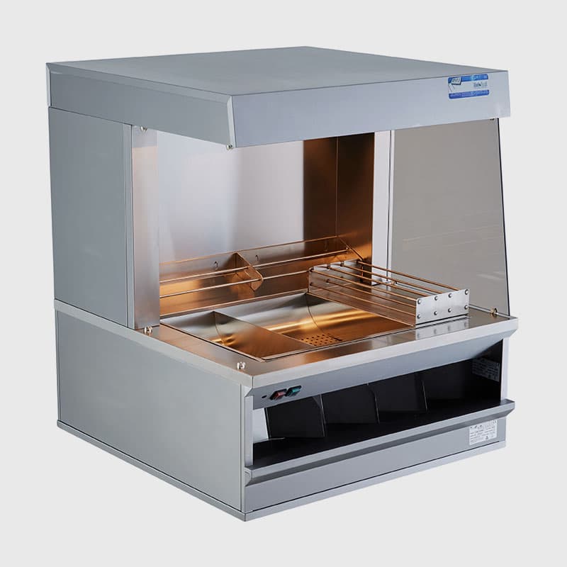 - Chip dump includes a grid to allow excess grease to escape of chips