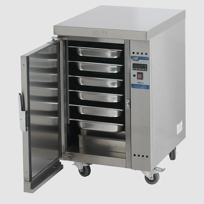 The Vizu Mini Humidified Holding Cabinet is designed to fit under your Vizu Fast Serv counter and keeps products at the ideal temperatures and humidity. It is suitable for many different products including meat, vegetables, fish, burgers, grilled or fried chicken, ribs and much more.